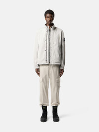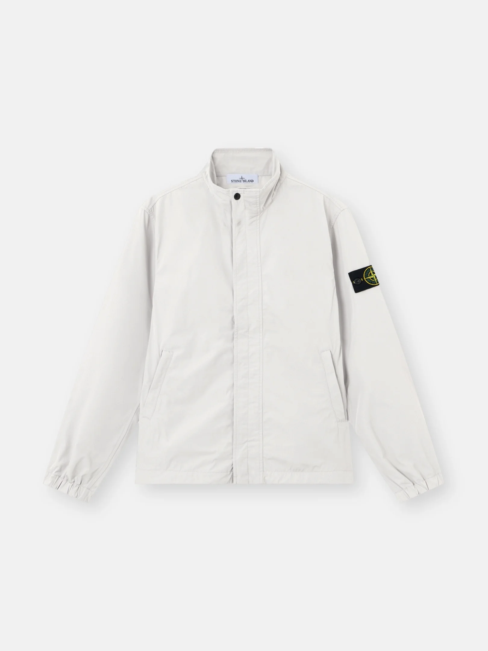 Stand collar jacket in soft micro twill, featuring zipper pockets, elasticated cuffs, an elasticated drawcord hem, and concealed two-way zipper fastening. Treated with anti-drop. FABRIC RESEARCH AND TREATMENT Stand collar jacket made of a polyester micro twill, featuring a spring-like, helical molecular structure. This fiber lends a soft and comfortable texture to the fabric with deep and rich colors. Treated with an anti-drop agent. STYLE AND FIT Stand collar. Angled welt hand pockets with concealed zipper. Internal top-entry pockets. Stone Island badge on left sleeve. Elasticated cuffs. Elasticated drawcord with stoppers at hem. Two-way zipper fastening under concealed snap placket. COMPOSITION AND CARE 100% Polyester