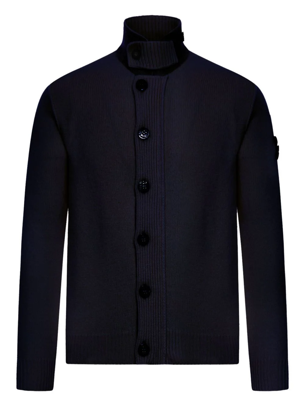 high-neck wool cardigan Highlights - Navy blue - High neck - Button fastening - Contrasting buttons - Long sleeves Imported Composition Wool 80%, Polyamide 20% Washing instructions Read Manufacturer Guidelines