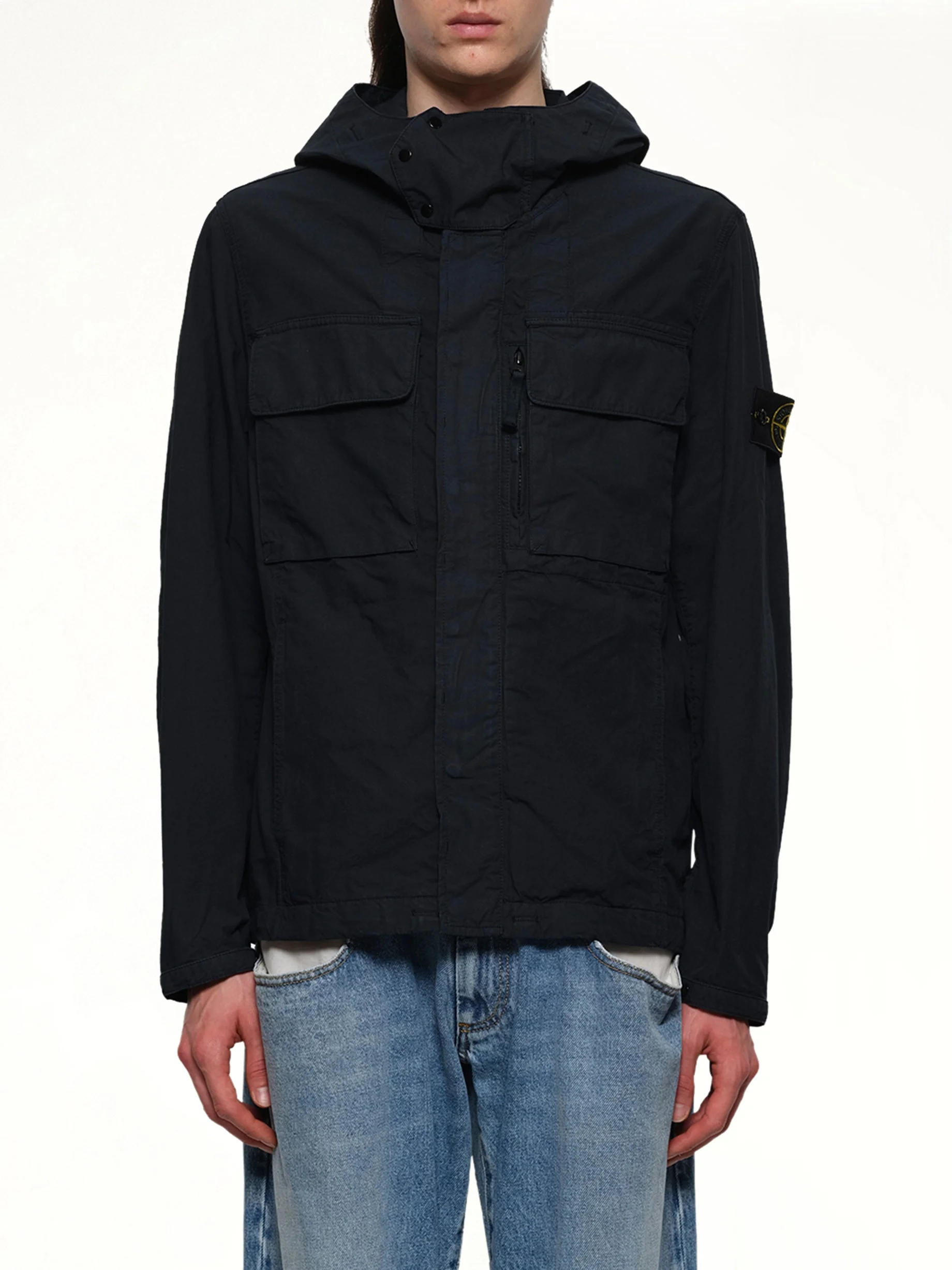 Stone Island's Q10001 Short Parka in Navy Blue is a versatile outerwear piece designed for both style and functionality. This parka offers a sleek silhouette while providing protection against the elements. - Composition: - - Adjustable hood for customized fit - Front zip closure with button placket - Multiple pockets for practical storage - Water-resistant fabric - Signature Stone Island logo patch on the sleeve - Made in - Model is 187 cm and wears size M SKU: Q100012S0240 V0020