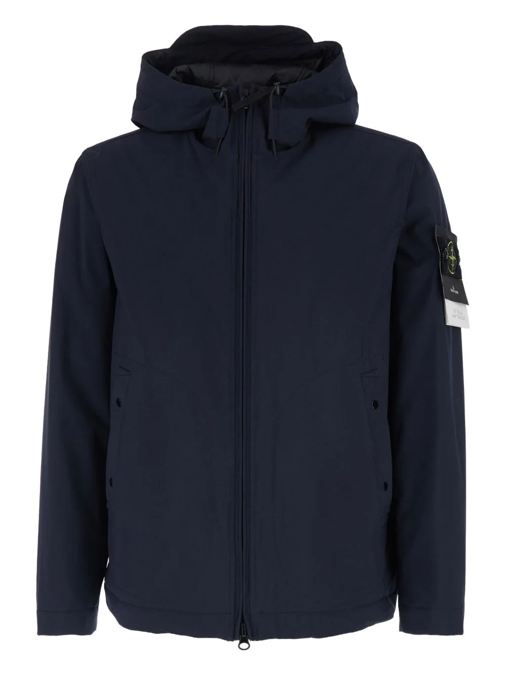 hooded pocket jacket Highlights - Blue - Hooded - Front zip fastening - Logo patch - Front pockets - Long sleeves Imported Composition Polyester 92%, Spandex/Elastane 8% Washing instructions Read Manufacturer Guidelines