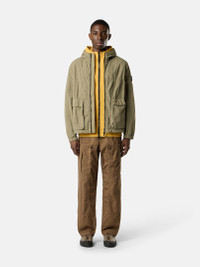 Short parka in brushed recycled nylon tela featuring a drawcord hood and hem, snap hand pockets, adjustable cuffs, and two-way zipper fastening. Garment dyed with anti-drop. FABRIC RESEARCH AND TREATMENT Short hooded parka made of a special recycled nylon tela. Thanks to its composition and to the brushing treatment, it offers a feeling of softness and comfort similar to cotton but with the durability and resistance specific to nylon fibers. Garment dyed with the addition of a special anti-drop agent. STYLE AND FIT Hood with internal elasticated drawcord. Front yoke. Bellows hand pockets with flap and concealed double snap. Back yoke with internal reinforcement. Stone Island badge on left sleeve. Adjustable elasticated cuffs with snap. Elasticated drawcord at hem. Two-way zipper fastening. COMPOSITION AND CARE External Fabric: 100% Polyamide / Nylon Garment Details: 100% Polyamide / Nylon Coating: 100% Polyurethanic Resin