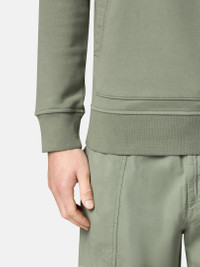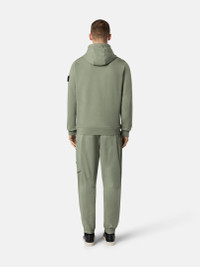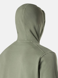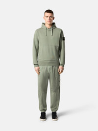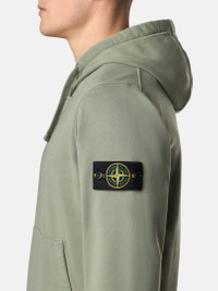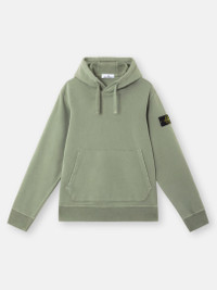 Sweatshirt in organic cotton fleece with contour drawstring hood, patch pockets, overlock seams, and lunette detail under back neckline. Garment dyed. FABRIC RESEARCH AND TREATMENT Hooded sweatshirt in organic cotton fleece. Garment dyed. STYLE AND FIT Hood with contour drawstring. Slanted patch pockets. Stone Island badge on the left sleeve. Overlock seams. Lunette with inner lining under back neckline. Ribbed cuffs and bottom band. Regular fit. COMPOSITION AND CARE 100% Cotton