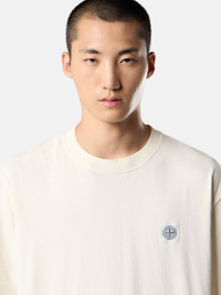 Short-sleeve T-shirt in combed organic cotton jersey, featuring a Compass logo patch on the chest and ribbed neckline. Garment dyed. FABRIC RESEARCH AND TREATMENT Short-sleeve T-shirt in combed organic cotton jersey. Garment dyed. STYLE AND FIT Ribbed neckline. Stone Island Compass logo patch on chest. Regular fit. COMPOSITION AND CARE Garment: 100% Cotton. Ribbing: 94% Cotton 6% Elastane / Spandex