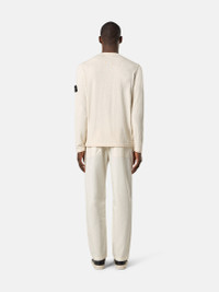 Knit crewneck sweater made from organic cotton and nylon featuring small roll details. Gauge 14. FABRIC RESEARCH AND TREATMENT Knit crewneck sweater in organic cotton and nylon. Stockinette stitch. Gauge 14. STYLE AND FIT Flat neckline. Small roll on armholes. Stone Island badge on the left sleeve. Flat cuffs and bottom band with small roll finish. Regular fit. COMPOSITION AND CARE 78% Cotton 22% Polyamide / Nylon