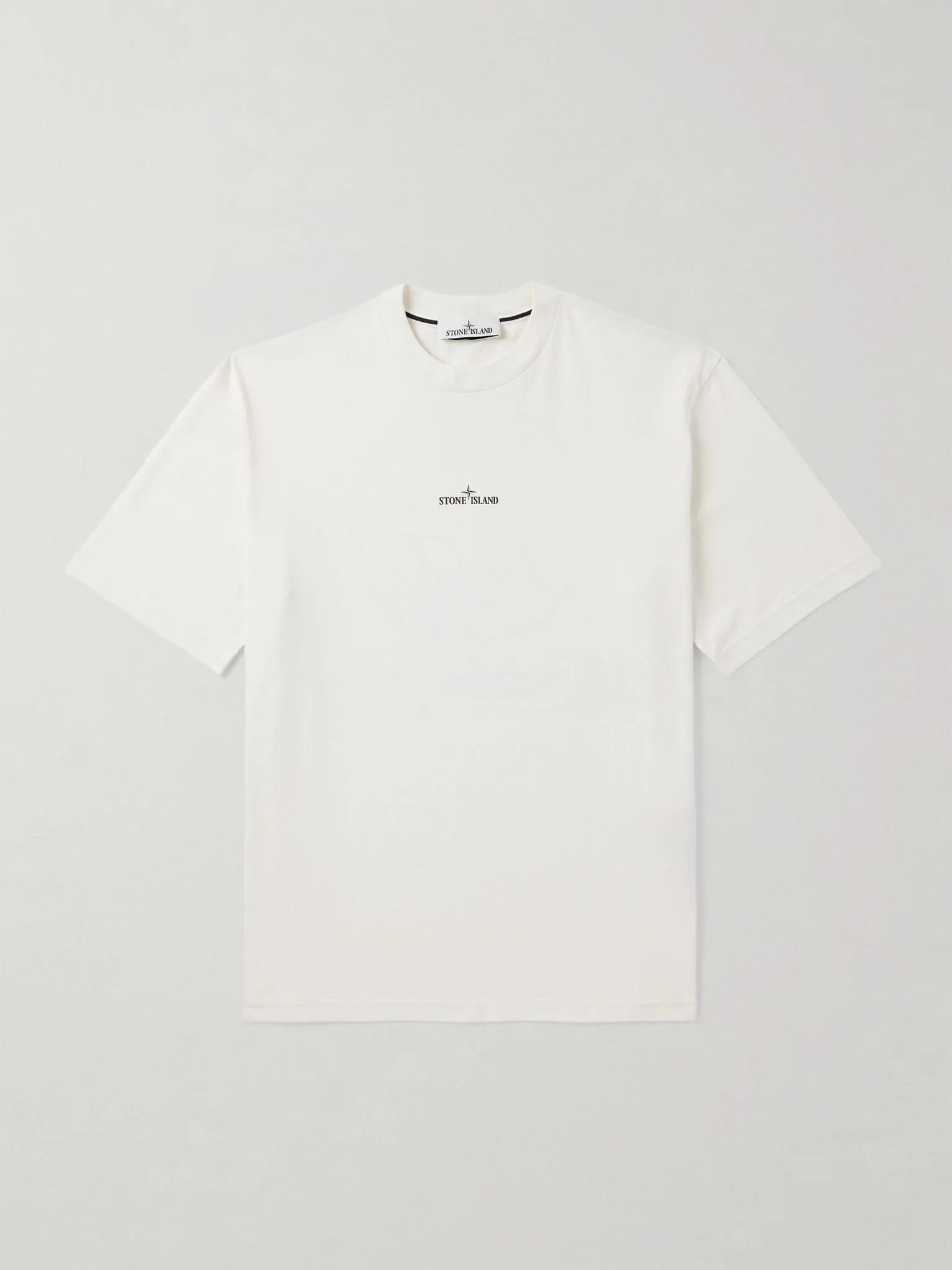 Massimo Osti named his experimental label Stone Island for two of the most common words in the novels of Joseph Conrad — the designer wanted to capture the spirit of adventure and exploration in his designs. This T-shirt is cut for a relaxed fit from soft cotton-jersey and printed with its coordinates for its HQ in Ravarino at the back. Lower Impact Materials. This product is made using at least 50% lower-impact materials or ingredients. Find out more about our Consciously Crafted criteria here. Size & Fit - Fits true to size. Take your normal size - Designed for a relaxed fit - Mid-weight, slightly stretchy fabric - Model is shown wearing a M - Model measures: chest 38"/ 96cm, height 6'2"/ 188cm Details & Care - Ivory and black cotton-jersey - 100% cotton - Machine wash