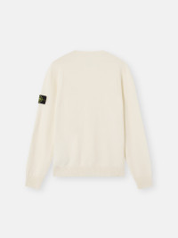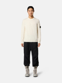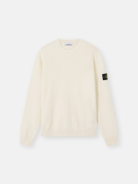 Knit crewneck sweater in stretch RWS wool featuring reverse stitch bands along the shoulder, neckline, and sides, with ribbed trims. Gauge 12. FABRIC RESEARCH AND TREATMENT Knit crewneck sweater in stretch RWS wool. Stockinette stitch. Gauge 12. STYLE AND FIT Ribbed neckline. Reverse stitch band along shoulder, back neckline, and sides. Stone Island badge on left sleeve. Ribbed cuffs and bottom band. Regular fit. COMPOSITION AND CARE 88% Virgin Wool 12% Polyester
