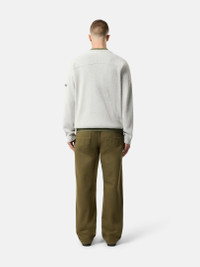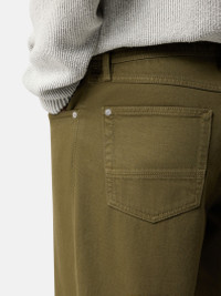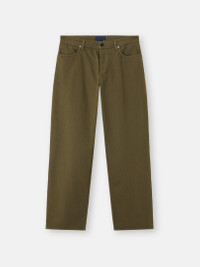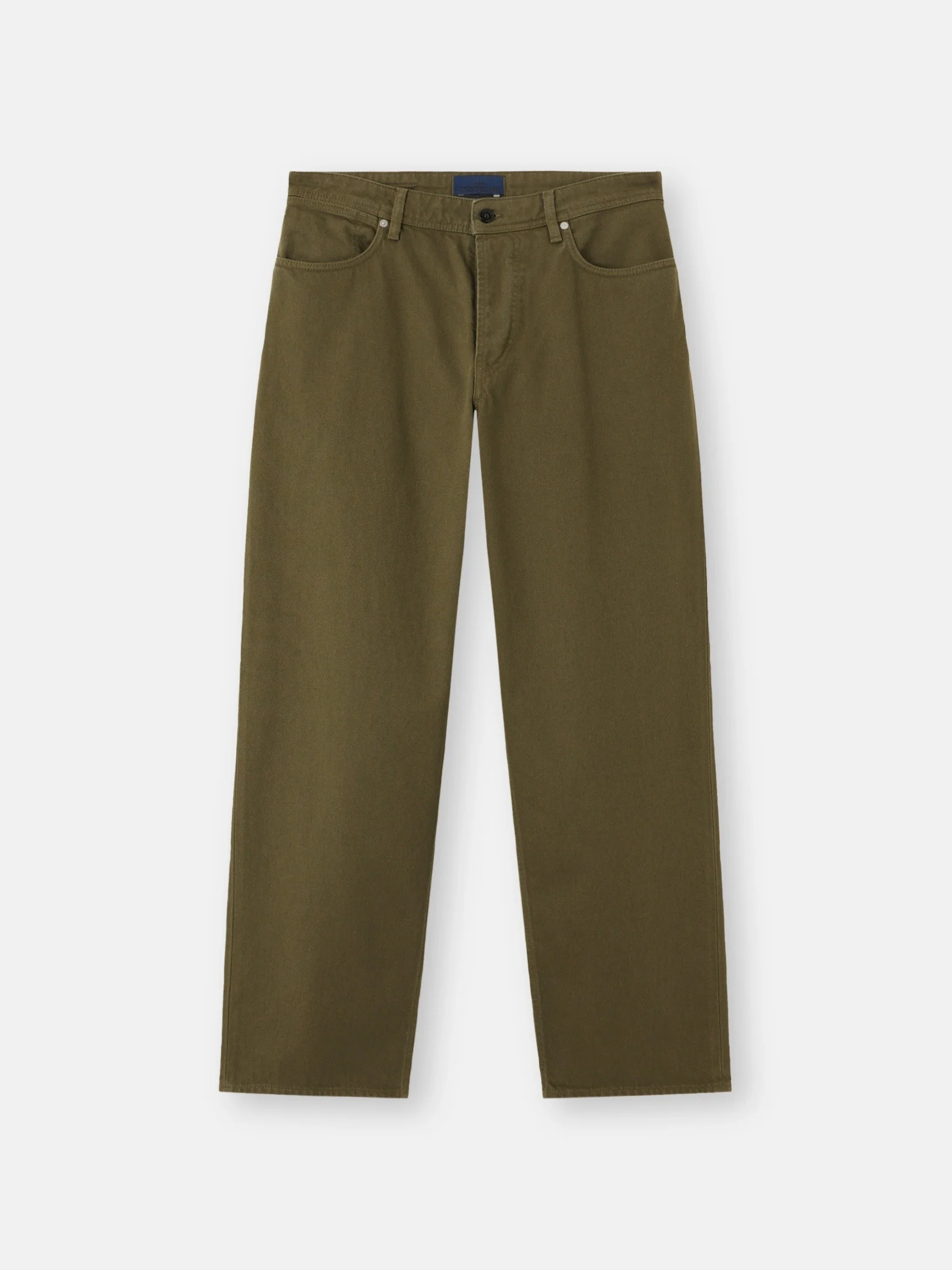 Five-pocket jeans in lightweight 13oz denim woven with a compact twill structure, featuring a small star embroidery and Stone Island Denim Research badge. Garment dyed. FABRIC RESEARCH AND TREATMENT Five-pocket jeans made from lightweight 13oz denim, woven with a compact 3/1 twill structure that creates the signature diagonal pattern of denim and lends remarkable durability to the fabric. Garment dyed using specific recipes. STYLE AND FIT Curved hand pockets with coin pocket on right side and small star embroidery under left pocket. Stone Island Denim Research badge with metal buttons on back waistband. Patch back pockets with reinforced lined bottom and horizontal stitch detail. All-over contrast stitching. Concealed button fly with visible black top button. Loose fit. COMPOSITION AND CARE 100% Cotton