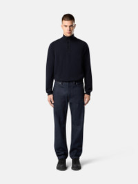 Five-pocket jeans in 13oz Japanese selvage denim woven from indigo-dyed cotton, featuring reinforced back pockets and the Stone Island Denim Research badge. FABRIC RESEARCH AND TREATMENT Five-pocket jeans made from 13oz Japanese selvage denim, woven with indigo-dyed cotton yarn. The finished garment, which does not undergo any further rinsing or treatments, will mold to the body’s movements and naturally release its color over time, highlighting the intrinsic and distinctive qualities of raw denim. STYLE AND FIT Curved hand pockets with coin pocket on right side and small star embroidery under left pocket. Stone Island Denim Research badge with metal buttons on back waistband. Patch back pockets with reinforced lined bottom and horizontal stitch detail. All-over contrast stitching. Hidden button fly with visible top button in black. Regular straight fit. COMPOSITION AND CARE 100% Cotton