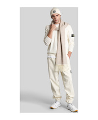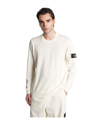 Knitwear in beige wool, round neck, long sleeves, patch logo sleeves, ribbed cuffs and bottom, 100% Virgin Wool, Made in Tunisia, model is 187 and wears a size XL Made in: Tunisia Color: beige Model number: K2S155100071S00C4V0093