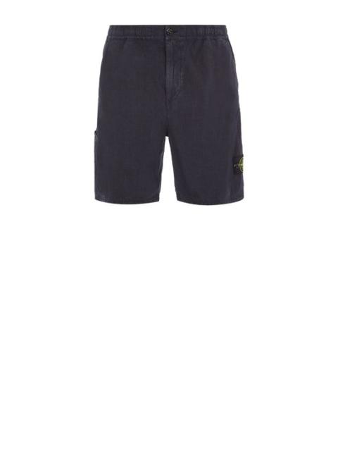 FABRIC RESEARCH AND TREATMENT LINO NYLON TELA-TC: Bermuda shorts made of a canvas built with an intimate blend of linen and nylon yarns. The purity and nobility of linen are combined with the lightness and technicality of nylon, creating a technical yarn with high resistance to abrasion. The finished garment then undergoes an elaborate dyeing process with nylon-only or cotton-nylon formulas, to obtain, in the case of nylon-only, garments where the linen component of the fabric takes on pastel color shades. COMPOSITION 80% Flax/Linen 20% Polyamide / Nylon