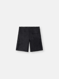 Cargo Bermuda shorts in an innovative nylon panama fabric designed to mimic natural fibers while offering greater lightness and strength, featuring multiple snap pockets. Garment dyed. FABRIC RESEARCH AND TREATMENT Cargo Bermuda shorts in an innovative Made in Japan 100% nylon fabric with an impressive organic appearance. The super-thin nylon extrusions are cut, mixed, blown, carded, twisted and spun to mimic natural fibers. The resulting panama weaved calendered fabric is lighter and stronger than natural fabrics. The garment dyeing procedure, thanks to the uneven penetration into the calendered fabric, lends a marbled look to the surface. Garment dyed using specific recipes. STYLE AND FIT Vertical hand pockets. Bellows cargo pockets with flap and concealed double snap. Stone Island badge on left cargo pocket. Back pocket with flap and concealed double snap. Zipper fly and button fastening. Loose wide leg fit. COMPOSITION AND CARE External Fabric: 100% Polyamide / Nylon Pocket Bag: 100% Polyamide / Nylon