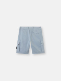 Cargo Bermuda shorts in stretch organic cotton twill, featuring hand pockets with concealed zipper, cargo flap pockets, and a back snap pocket. Garment dyed. FABRIC RESEARCH AND TREATMENT Cargo Bermuda shorts in stretch organic cotton twill. Garment dyed. STYLE AND FIT Vertical hand pockets with concealed zipper and fixed flap. Cargo bellows pockets with flap and double snap. Stone Island badge on left cargo pocket. Back pocket with fixed flap and snap. Reinforced inner waistband with contrast lining. Zipper fly and button fastening. Slim fit. COMPOSITION AND CARE External Fabric: 97% Cotton 3% Elastane / Spandex Pocket Bag: 100% Cotton