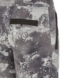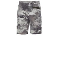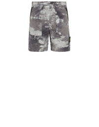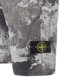 FABRIC RESEARCH AND TREATMENT DISSOLVING GRID CAMOUFLAGE ON ECONYL® REGENERATED NYLON Fatigue Bermuda shorts in a nylon canvas garment made with a trilobate structure sheen ECONYL® regenerated yarns. The pre-and post-consumer, end-of-life nylon is recycled with a complex depolymerization process to create this fiber that features the same intrinsic characteristics of nylon from raw fossil materials. The digital print of an original camouflage created by Stone Island by artfully dirtying parts of a mesh support is partially enhanced by an embossed effect motif further emphasized by the garment dyeing. It undergoes an elaborate dual-color formula overdyeing process. COMPOSITION GARMENT: 100% Polyamide / Nylon LINING: 100% Polyamide / Nylon