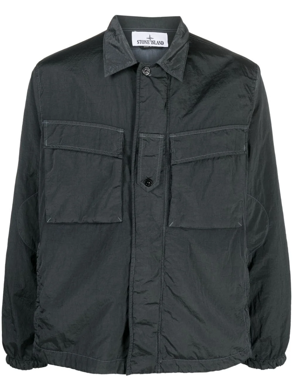lightweight shirt jacket This shirt jacket by Stone Island is crafted from durable and lightweight material with a lustrous dark grey finish that lends a utilitarian style. Two large patch pockets decorate the front of its long-sleeved silhouette. Highlights - Dark grey - Spread collar - Front button fastening - Concealed front zip fastening - Two front patch pockets - Long sleeves - Straight hem Imported Composition Polyamide 100% SIZE & FIT Model measurements Height 6 ft 1 in(1.85 m) Bust/Chest 38.58 in(98 cm) Hips 37 in(94 cm) Waist 30.31 in(77 cm) FittingInformation Designed for a regular fit, allowing for a comfortably loose fit throughout the body Made from a padded non-stretch fabric, giving it no natural elasticity This piece fits true to size – take your usual size Washing instructions Machine Wash