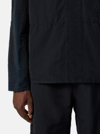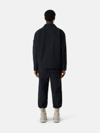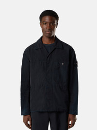 Overshirt in abrasion-resistant nylon with chest pocket, double placket, and button fastening. Garment dyed with an innovative corrosion treatment that makes each piece unique. FABRIC RESEARCH AND TREATMENT Overshirt made from a fabric composed of mechanically spun recycled nylon fibers that are resistant to wear and abrasion. During the spinning process, the nylon filaments are steamed to achieve a feel closer to organic fibers. Garment dyed with carefully selected dyes, then faded through an innovative corrosion treatment, reflecting Stone Island's ongoing commitment to research and experimentation. The corroded areas, particularly where the fabric is thicker, take on varied colors due to the irregularity of the treatment, creating a slightly worn effect and making each piece unique. STYLE AND FIT One patch pocket on left chest with snap. Two internal pockets. White Stone Island fabric research badge on left sleeve. Tightening snap at cuffs. Button fastening inside double placket. Comfort fit. COMPOSITION AND CARE 100% Polyamide / Nylon