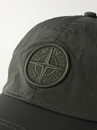 Stone Island's cap is made from the brand's Nylon Metal fabric, which is spun from regenerated ECONYL® fibres. Lined with breathable mesh, it's branded with the label's compass logo and has an adjustable toggle at the back. Lower Impact Materials. This product is made using at least 50% lower-impact materials or ingredients. Find out more about our Consciously Crafted criteria here. Details & Care - Army-green ECONYL® Nylon Metal - 100% ECONYL®; lining: 100% polyester - Hand wash