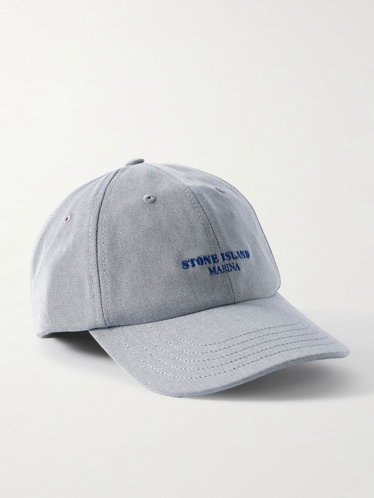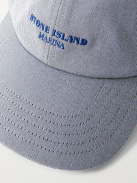 Stone Island's baseball cap belongs to the brand's 'Marina' line, inspired by staples worn at sea. It's made from cotton-blend gabardine with smart serif lettering. Details & Care - Light-blue cotton-blend gabardine - 59% cotton, 26% polyester, 13% viscose, 2% elastane - Dry clean