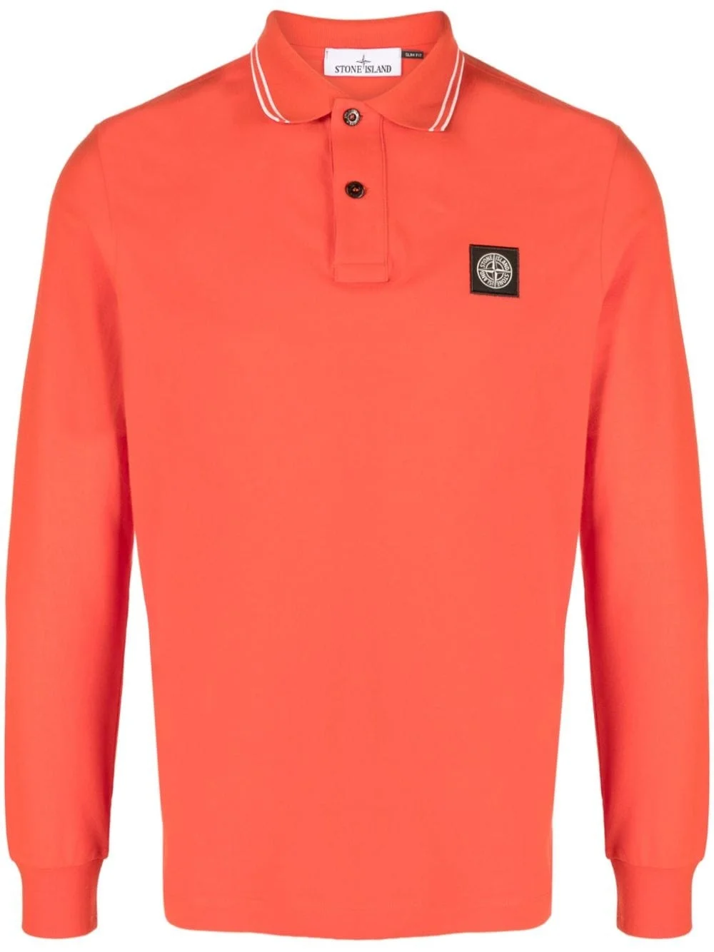 logo-patch cotton polo shirt Spun from stretch cotton, this polo shirt is rendered in a carrot-orange hue. It boasts the iconic detachable Compass motif – emblematic of the brand's military influences and constant exploration. Highlights - Carrot orange - Stretch-cotton - Stripe trim - Logo patch at the chest - Polo collar - Front button placket - Long sleeves - Straight hem Imported Composition Cotton 97%, Spandex/Elastane 3% Washing instructions Machine Wash