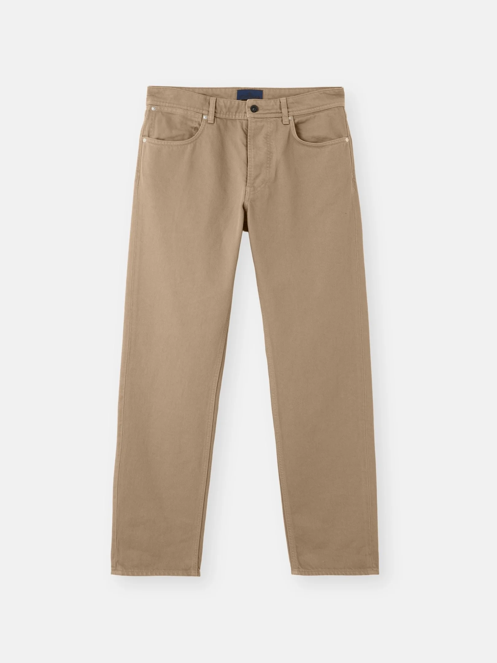 Five-pocket jeans in lightweight 13oz denim woven with a compact twill structure, featuring a small star embroidery and Stone Island Denim Research badge. Garment dyed. FABRIC RESEARCH AND TREATMENT Five-pocket jeans made from lightweight 13oz denim, woven with a compact 3/1 twill structure that creates the signature diagonal pattern of denim and lends remarkable durability to the fabric. Garment dyed using specific recipes. STYLE AND FIT Curved hand pockets with coin pocket on right side and small star embroidery under left pocket. Stone Island Denim Research badge with metal buttons on back waistband. Patch back pockets with reinforced lined bottom and horizontal stitch detail. Concealed button fly with visible black top button. Regular straight fit. COMPOSITION AND CARE 100% Cotton