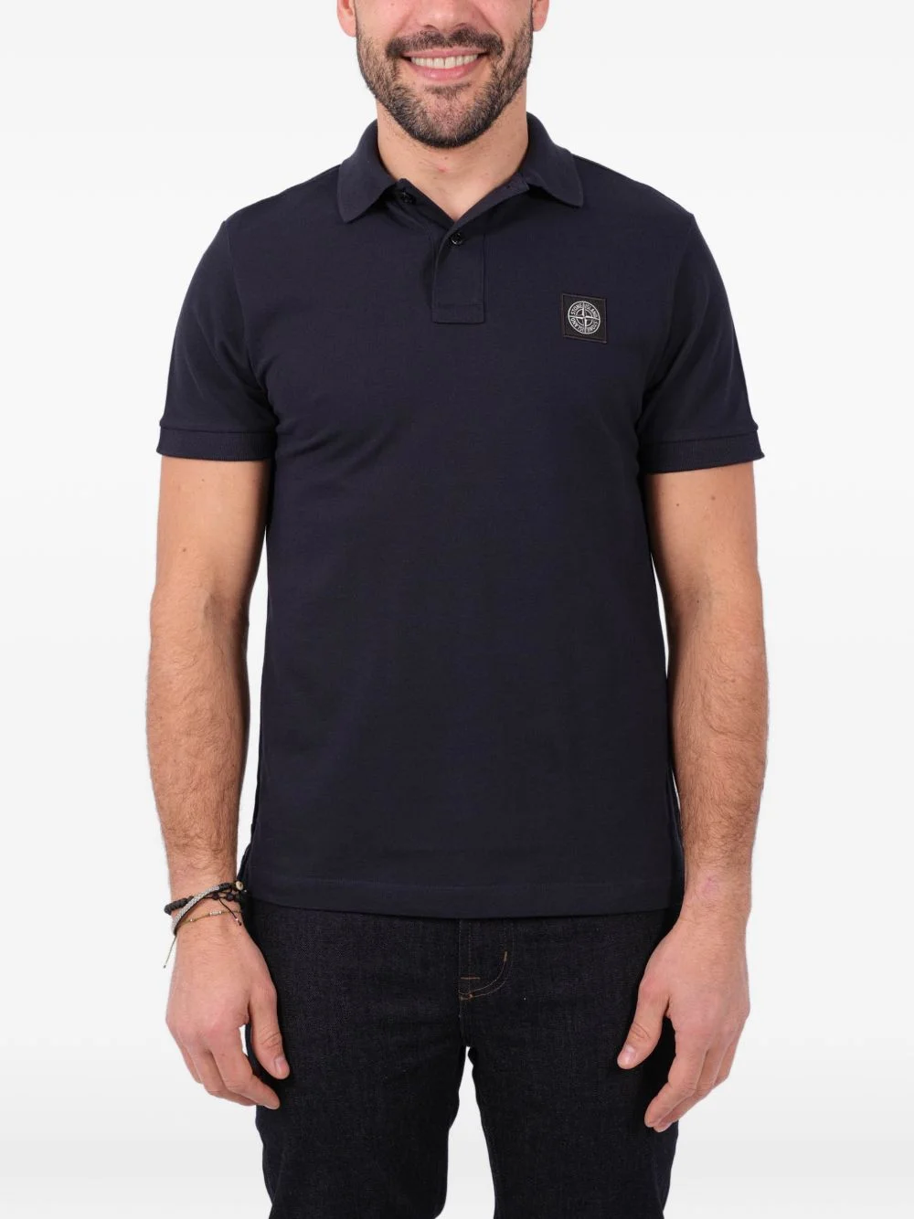 logo patch polo shirt Highlights - Blue - Logo patch - Polo collar - Button placket Imported Composition Cotton 95%, Elastane 5% Washing instructions Read Manufacturer Guidelines