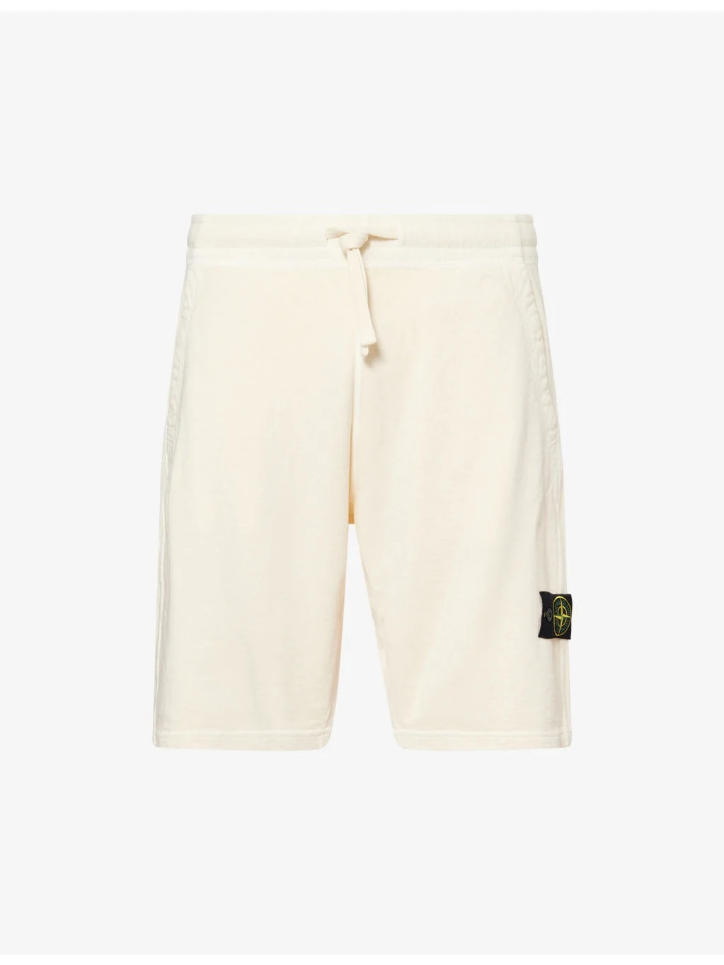 PRODUCT DETAILS - Stone Island cotton-jersey shorts - 100% cotton - Self-tie fastening at waist - Elasticated waist, adjustable drawstring, two slip pockets at front, one patch pocket at back, embroidered logo patch at front, ribbed - Machine wash at 40°C - Made in Tunisia - Model is 6ft 2in/1.88m and wears a size medium - Lightweight, slight stretch Ref: R04421835