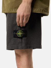 Sweatshorts in malfile cotton fleece with slub effect, featuring pockets and an elasticated drawstring waistband. Lightweight. Garment dyed with the “OLD” treatment for a slightly worn appearance. FABRIC RESEARCH AND TREATMENT Sweatshorts in malfile cotton fleece with slub effect. Lightweight. Garment dyed with the “OLD” treatment, an exclusive dyeing treatment and subsequent fading on the finished garment for a slightly worn and three-dimensional appearance. STYLE AND FIT Vertical welt hand pockets with internal tape reinforcement. Back patch pocket with snap. Stone Island badge on left leg. Elasticated waistband with internal drawstring. Overlock-stitched details. Loose wide leg fit. COMPOSITION AND CARE External Fabric: 100% Cotton Pocket Bag: 100% Cotton