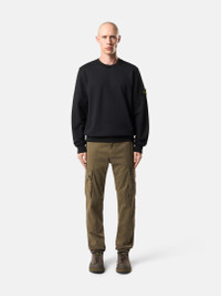 Crewneck sweatshirt in organic cotton fleece featuring overlock seams, a lunette with inner lining, and elasticated ribbed trims. Garment dyed. FABRIC RESEARCH AND TREATMENT Crewneck sweatshirt in organic cotton fleece. Garment dyed. STYLE AND FIT Ribbed neckline. Overlock seams. Stone Island badge on left sleeve. Lunette under back neckline with inner lining. Elasticated ribbed cuffs and bottom band. Regular fit. COMPOSITION AND CARE External Fabric: 100% Cotton. Ribbing: 99% Cotton 1% Elastane / Spandex