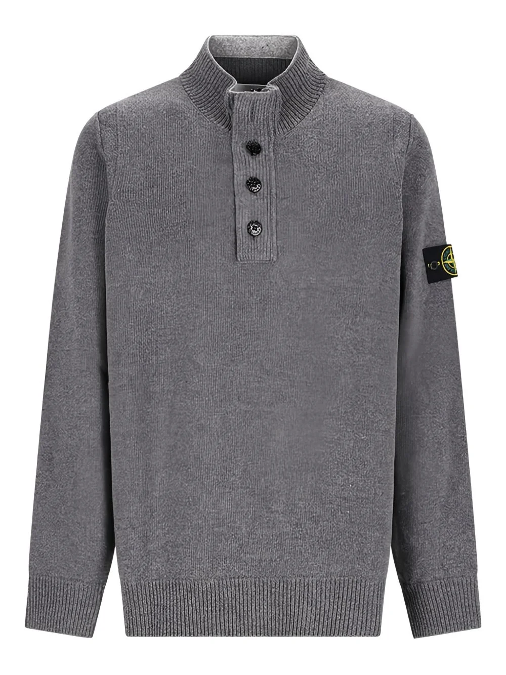 buttoned long-sleeve polo shirt Highlights - Grey - Button fastening - Long sleeves - Ribbed knit - Logo patch Imported Composition Wool 80%, Polyester 20% Washing instructions Read Manufacturer Guidelines