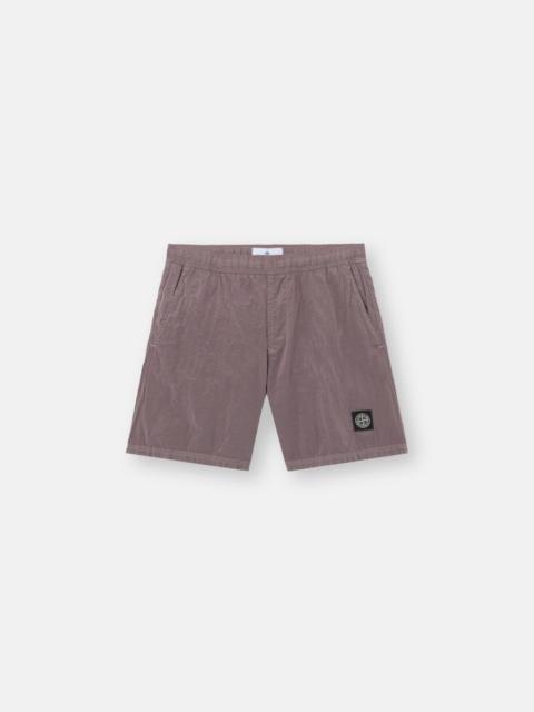 Mid-length swim shorts in Nylon Metal made with ECONYL® regenerated yarns, featuring hand pockets, a back zipper pocket, elasticated drawstring waistband, and mesh lining. Garment dyed. FABRIC RESEARCH AND TREATMENT Mid-length swim shorts in Nylon Metal. The evolution of this iconic material sees the use of ECONYL® regenerated yarns: the life-ended nylon, pre- and post-consumer, is recycled with a complex depolymerization process to create this fiber that features the same intrinsic characteristics of nylon from fossil raw material. Garment dyed with a double-color recipe. STYLE AND FIT Angled hand pockets. Back pocket with fixed flap and concealed zipper fastening. Eyelets on back. Compass logo patch on left leg. Elasticated waistband with internal drawstring. Nylon mesh lining. Regular fit. COMPOSITION AND CARE Garment: 100% Polyamide / Nylon Lining: 100% Polyamide / Nylon