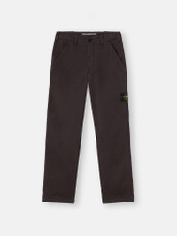 Chino pants in stretch organic cotton twill, featuring slanted hand pockets and back patch pockets with snaps, with zipper and button fly. Garment dyed. FABRIC RESEARCH AND TREATMENT Chino pants in stretch organic cotton twill. Garment dyed. STYLE AND FIT Slanted hand pockets. Back patch pockets with snap. Stone Island badge on left leg. Zipper and button fly. Regular fit. COMPOSITION AND CARE 97% Cotton 3% Elastane / Spandex