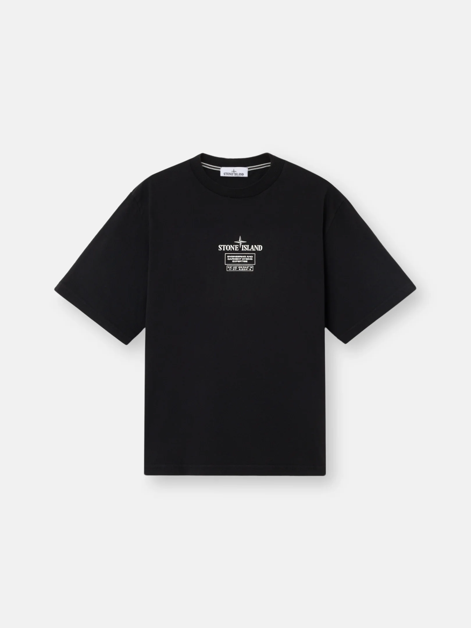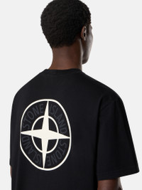 Short-sleeve T-shirt in combed organic cotton jersey, featuring the Stone Island logo on the chest and a two-tone Compass print on the back. Garment dyed. FABRIC RESEARCH AND TREATMENT Short-sleeve T-shirt in combed organic cotton jersey with the ‘02 Industrial Logos’ print. Garment dyed. STYLE AND FIT Ribbed neckline. Stone Island logo print and lettering on chest. Large two-tone print of Stone Island Compass logo on back. Regular fit. COMPOSITION AND CARE Garment: 100% Cotton. Ribbing: 100% Cotton
