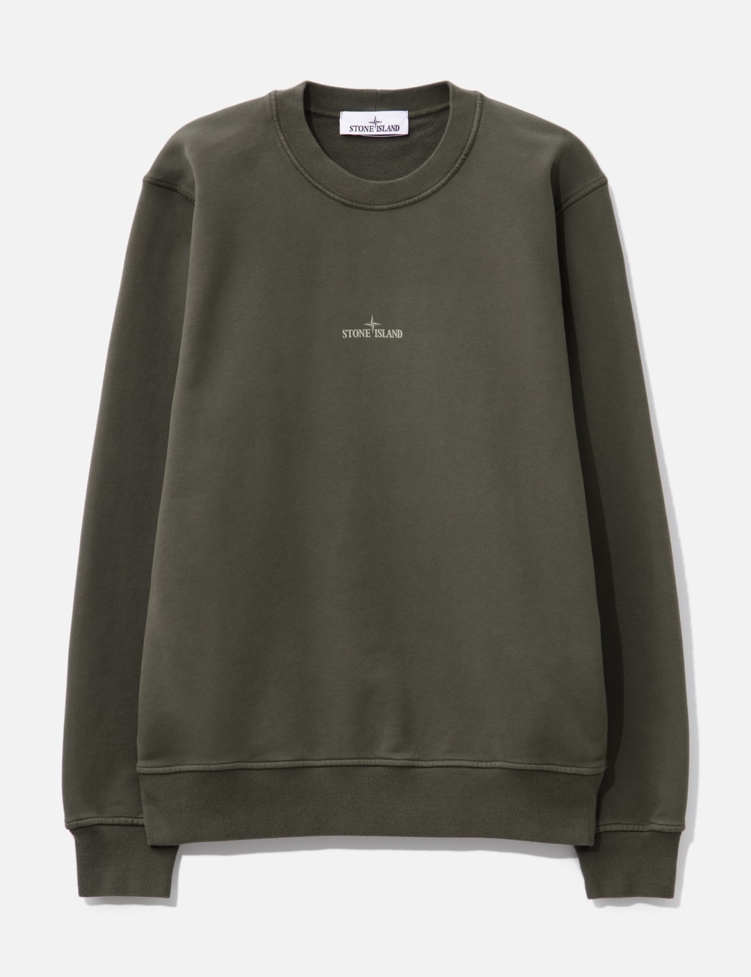- Stone Island - 6100665 Cotton Fleece Sweater - Made in cotton fleece - Garment dyed - Crewneck - Long sleeve - Logo print on the chest - Overlock seams - 'Institutional Five' print on back - Ribbed collar, cuffs and hem - Color: Military Green - Material: External Fabric: 100% Cotton; Ribbing: 98% Cotton 2% Elastane / Spandex - See more Sweatshirts and Clothing SIZING - Model wears size M - Model measures: Height 186cm, Chest 34”/86cm, Waist 28”/71cm, Hip 36”/91cm