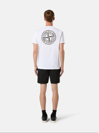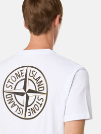 T-shirt in cotton jersey featuring a large rubberized 'Institutional Four' print motif of the Stone Island Compass logo. Garment dyed. FABRIC RESEARCH AND TREATMENT Short sleeve T-shirt in cotton jersey. Garment dyed. STYLE AND FIT Ribbed neckline. Small print of the Stone Island logo central on chest. Large, raised, rubberized ‘Institutional Four’ print motif of the Stone Island Compass logo with contrasting color profile on the back. Slim fit. COMPOSITION AND CARE 100% Cotton