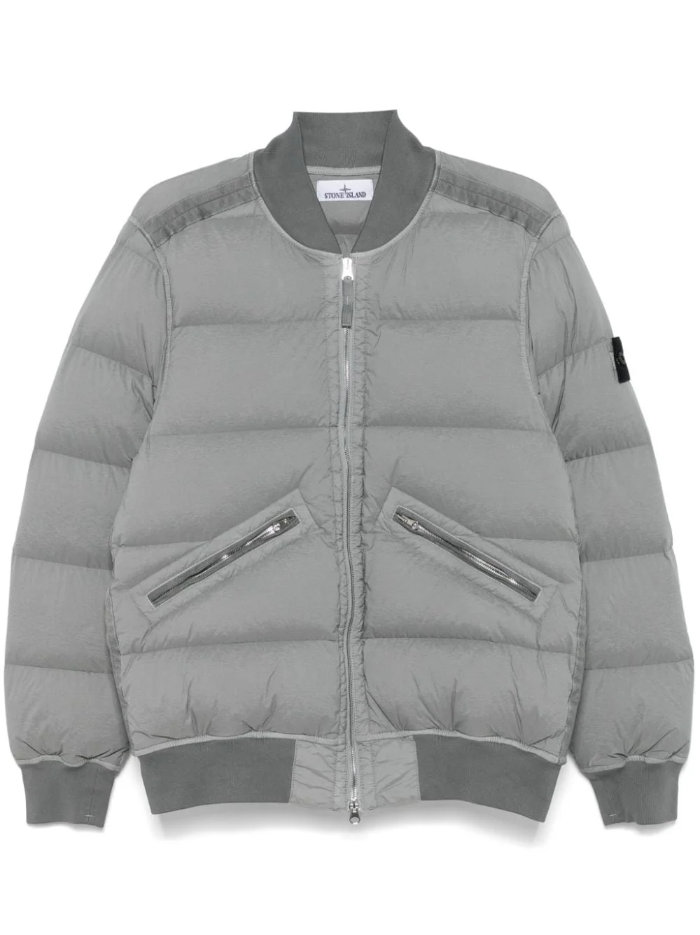 seamless jacket Highlights - Cool grey - Front two-way zip fastening - Seamless - Padded design - Quilted - Baseball collar - Long sleeves - Signature detachable compass badge - Front zip fastening pockets - Down-feather filling - Quilted lining - Ribbed cuffs and hem Imported Composition Outer: Polyamide 84%, Elastane 16% Lining: RDS Down 90%, Polyamide 84%, Elastane 16%, Duck Feathers 10% SIZE & FIT Model measurements Height 6 ft 2 in(1.87 m) Bust/Chest 37.79 in(96 cm) Hips 37.79 in(96 cm) Waist 30.31 in(77 cm) FittingInformation Designed for a regular fit, allowing for a comfortably loose fit throughout the body The ribbed hem offers a close, comfortable fit Made from a padded stretch fabric, giving it elasticity and a flexible fit