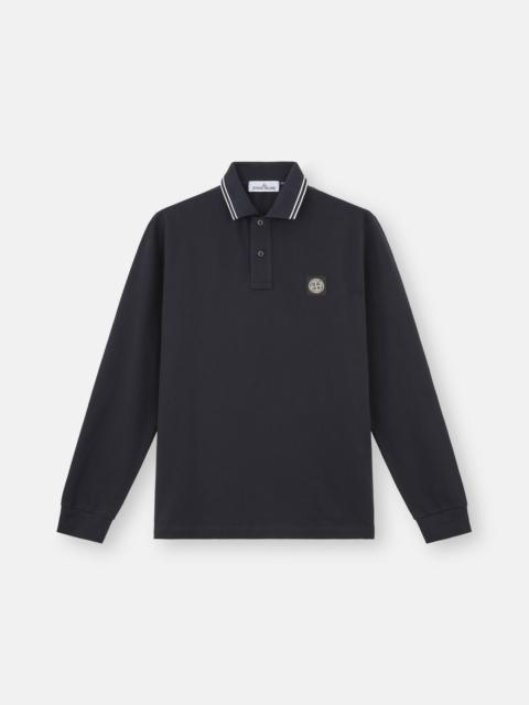 Long-sleeve polo shirt in organic cotton and elastane pique with two-button fastening and contrast-colored stripes on the collar and Compass logo on chest. FABRIC RESEARCH AND TREATMENT Long-sleeve polo shirt in 95% organic cotton / 5% elastane pique. STYLE AND FIT Ribbed collar with two parallel contrast-colored stripes, two-button fastening. Stone Island Compass logo patch on chest. Bottom slit on sides. Ribbed cuffs. Slim fit. COMPOSITION AND CARE 95% Cotton 5% Elastane / Spandex