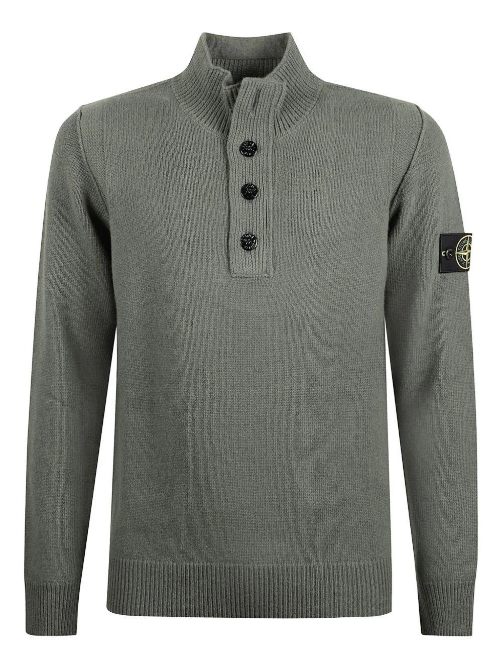 long-sleeve sweater Highlights - Olive green - High neck - Button fastening - Long sleeves - Logo patch Imported Composition Wool 80%, Polyamide 20% Washing instructions Read Manufacturer Guidelines