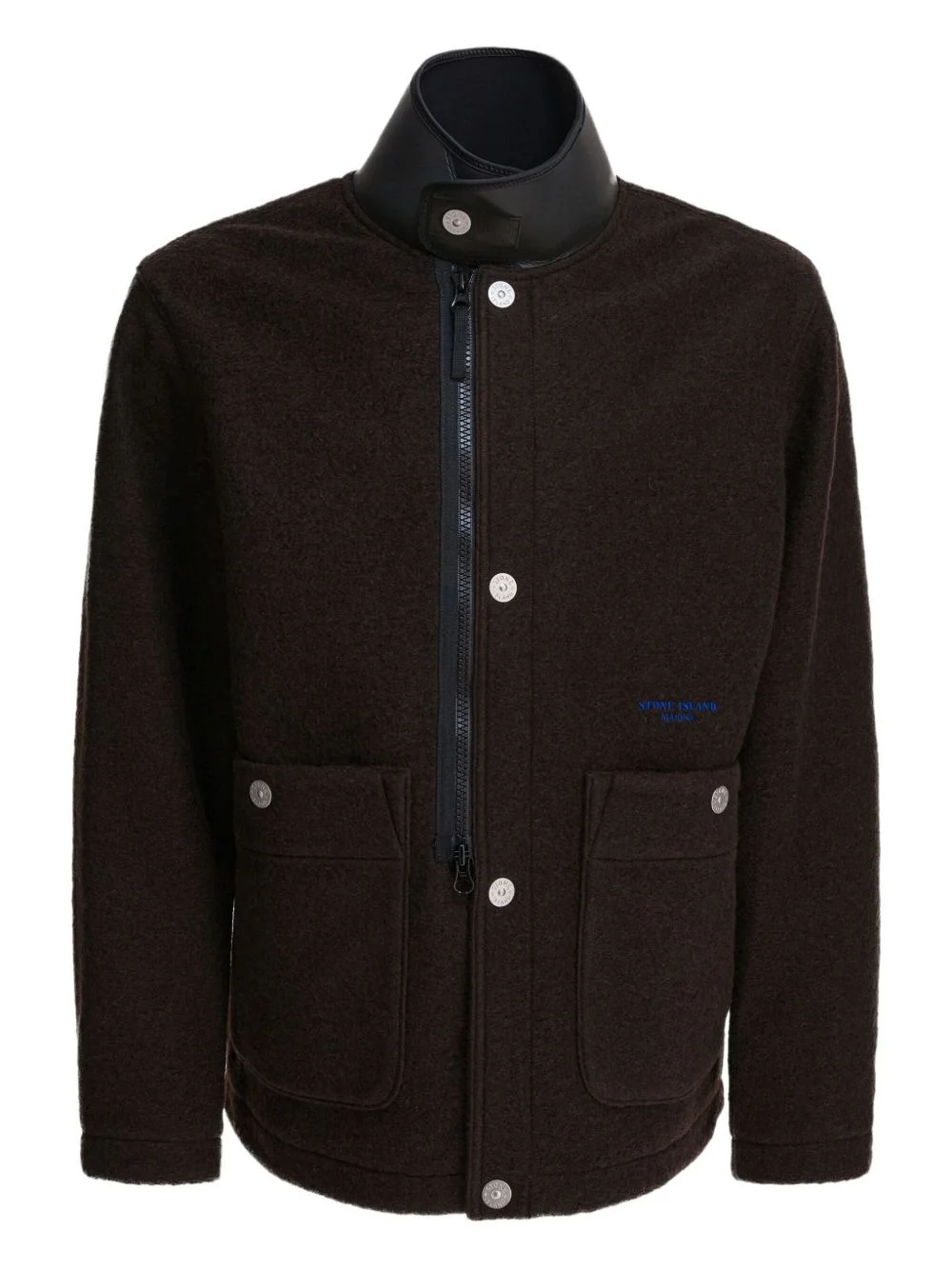 embroidered-logo jacket Highlights - Brown - Zip fastening - Stand collar - Patch pockets - Embroidered logo - Button details Made in Italy Composition Wool 75%, Polyester 25% Washing instructions Read Manufacturer Guidelines