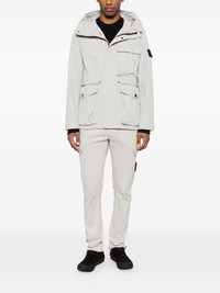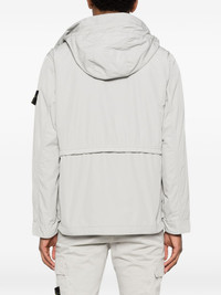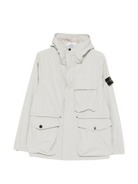 hooded chest-pocket jacket Highlights - Pearl grey - Chest flap pocket - Front flap pockets - Long sleeves - Straight hem - Concealed front fastening Imported Composition Polyester 100% Washing instructions Machine Wash
