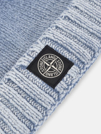 Beanie in cotton chenille, printed with white pigment to create a gradient effect, finished with a ribbed cuff and Compass logo patch. Gauge 3. FABRIC RESEARCH AND TREATMENT Knit beanie in cotton chenille. The piece is printed with white pigment to achieve the gradient effect. Gauge 3. STYLE AND FIT Ribbed cuff with Compass logo patch. COMPOSITION AND CARE 100% Cotton