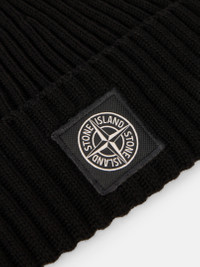 Knit beanie in RWS wool with full ribbing, featuring a cuff with Stone Island Compass logo patch. Gauge 7. FABRIC RESEARCH AND TREATMENT Knit beanie in RWS wool with full ribbing. Gauge 7. The Responsible Wool Standard (RWS) describes and certifies animal welfare and land-management practices in wool production and tracks the certified material from farm to final product. STYLE AND FIT Cuff with Stone Island Compass logo patch. COMPOSITION AND CARE 100% Virgin Wool