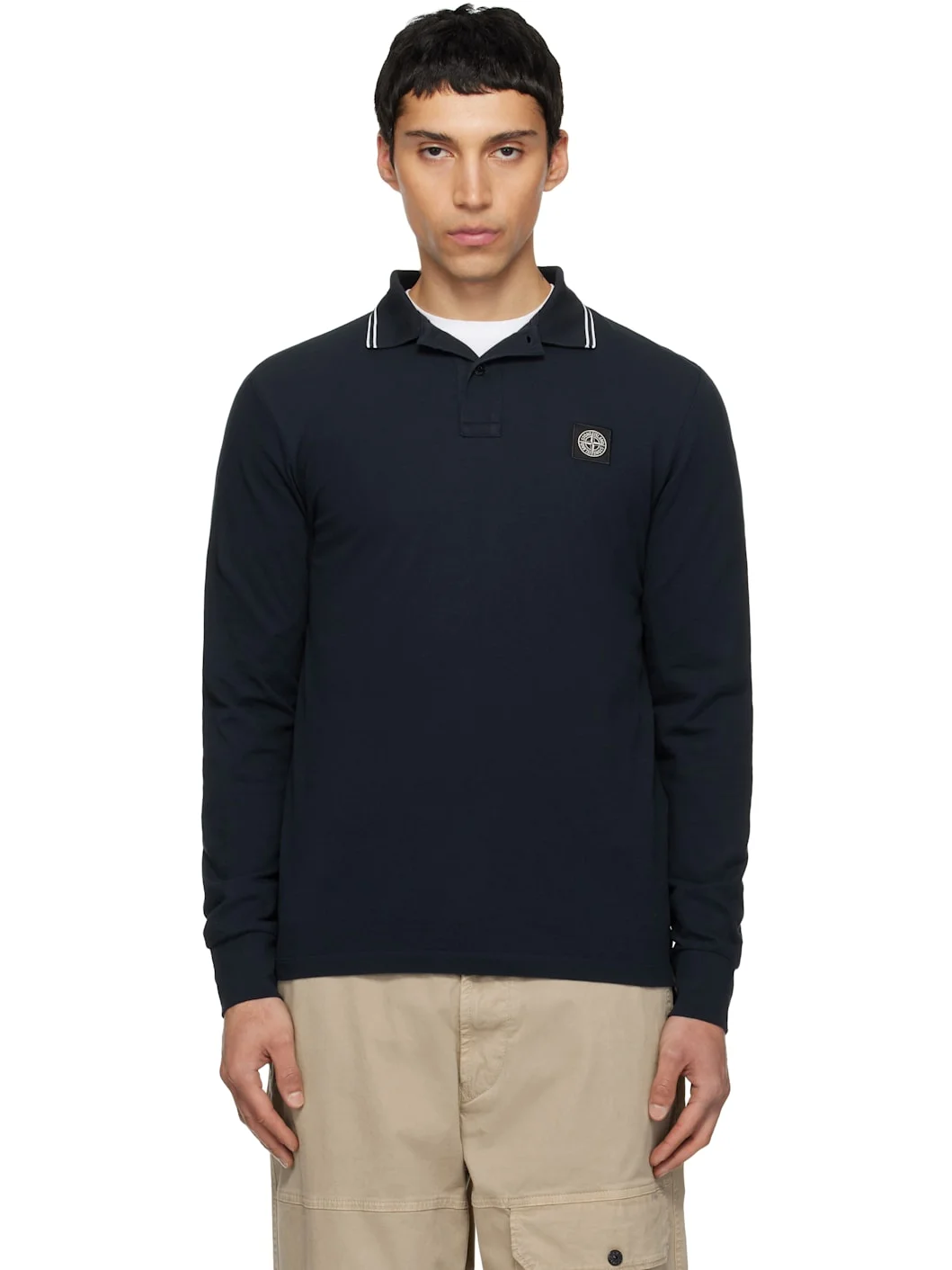 Cotton-blend pique polo. · Spread collar · Three-button placket · Logo patch at chest · Tennis-tail hem · Rib-knit cuffs Supplier color: Navy Blue Body: 97% cotton, 3% polyester. Trim: 98% cotton, 2% elastane. Made in Turkey 261828M212005