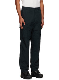 Garment-dyed cotton canvas cargo pants. · Belt loops · Three-pocket styling · Zip fly · Flap pockets and zip pocket at legs · Detachable logo patch at leg Supplier color: Navy blue 100% cotton. Made in Romania 252828M191029