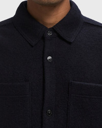 The Stone Island knit shirt with button placket is made from felted RWS wool with patch breast pockets and press stud fastening. A signature logo patch on the sleeve completes the design. - Gauge 12 - Patch chest pockets - Stone Island badge on the left sleeve - Press stud fastening - Oversized fit Article Number: K2S155100058S0IN1.V0020 Gender: Men Color: Navy Blue Material: 100% Wool
