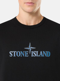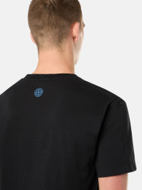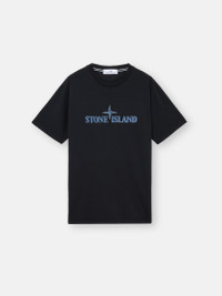 Short-sleeve T-shirt in cotton jersey featuring the 'Institutional Three' print motif with a contrasting rubberized logo application on the chest. Garment dyed. FABRIC RESEARCH AND TREATMENT Short sleeve T-shirt in cotton jersey. Garment dyed. STYLE AND FIT Ribbed neckline. Raised, rubberized ‘Institutional Three’ print motif of the Stone Island logo with contrasting color profile on the center chest. Small print of the Stone Island Compass logo under the neckline on back. Slim fit. COMPOSITION AND CARE 100% Cotton
