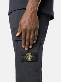 Cargo pants in stretch organic broken twill cotton featuring a slightly worn appearance, and multiple pockets with snap fastening. Garment dyed. FABRIC RESEARCH AND TREATMENT Cargo pants in stretch organic broken twill cotton. Garment dyed with the 'OLD' treatment, an exclusive dyeing treatment and subsequent fading on the finished garment for a slightly worn and three-dimensional appearance. STYLE AND FIT Slanted hand pockets. One back slit pocket with hidden snap fastening. Pocket on legs featuring a flap with indent seam and hidden two-snap fastening; the left pocket features the Stone Island badge. Zipper and button fly. Skinny fit. COMPOSITION AND CARE 98% Cotton 2% Elastane / Spandex