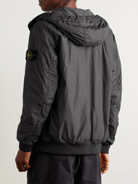 Stone Island develops innovative fabrics, backed by extensive textile research, in its Ravarino lab. This hooded jacket is cut from signature wind-resistant Crinkle Reps Nylon and padded with lightweight PrimaLoft®-TC for warmth. Lower Impact Materials. This product is made using at least 50% lower-impact materials or ingredients. Find out more about our Consciously Crafted criteria here. Size & Fit - Fits true to size. Take your normal size - Designed for a relaxed fit - Ribbed hem - Padded, non-stretchy fabric - Model is shown wearing a M - Model measures: chest 38"/ 96cm, height 6'1"/ 185cm Details & Care - Charcoal Crinkle Reps Nylon - 100% polyamide; coating: 100% polyurethanic resin; trim: 95% polyamide, 5% elastane; padding: 100% polyester; lining1: 100% polyamide; lining2: 100% polyamide - Fully lined - Machine wash - Designer colour: Lead Grey
