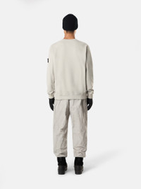 Crewneck sweatshirt in brushed organic cotton fleece featuring ribbed triangular inserts at the shoulders and sides. Garment dyed. FABRIC RESEARCH AND TREATMENT Crewneck sweatshirt in brushed organic cotton fleece. Garment dyed. STYLE AND FIT Ribbed neckline. Triangular ribbed insert at shoulders and down sides. Stone Island badge on left sleeve. Elasticated ribbed cuffs and bottom band. Regular fit. COMPOSITION AND CARE External Fabric: 100% Cotton. Secondary Fabric: 98% Cotton 2% Elastane / Spandex