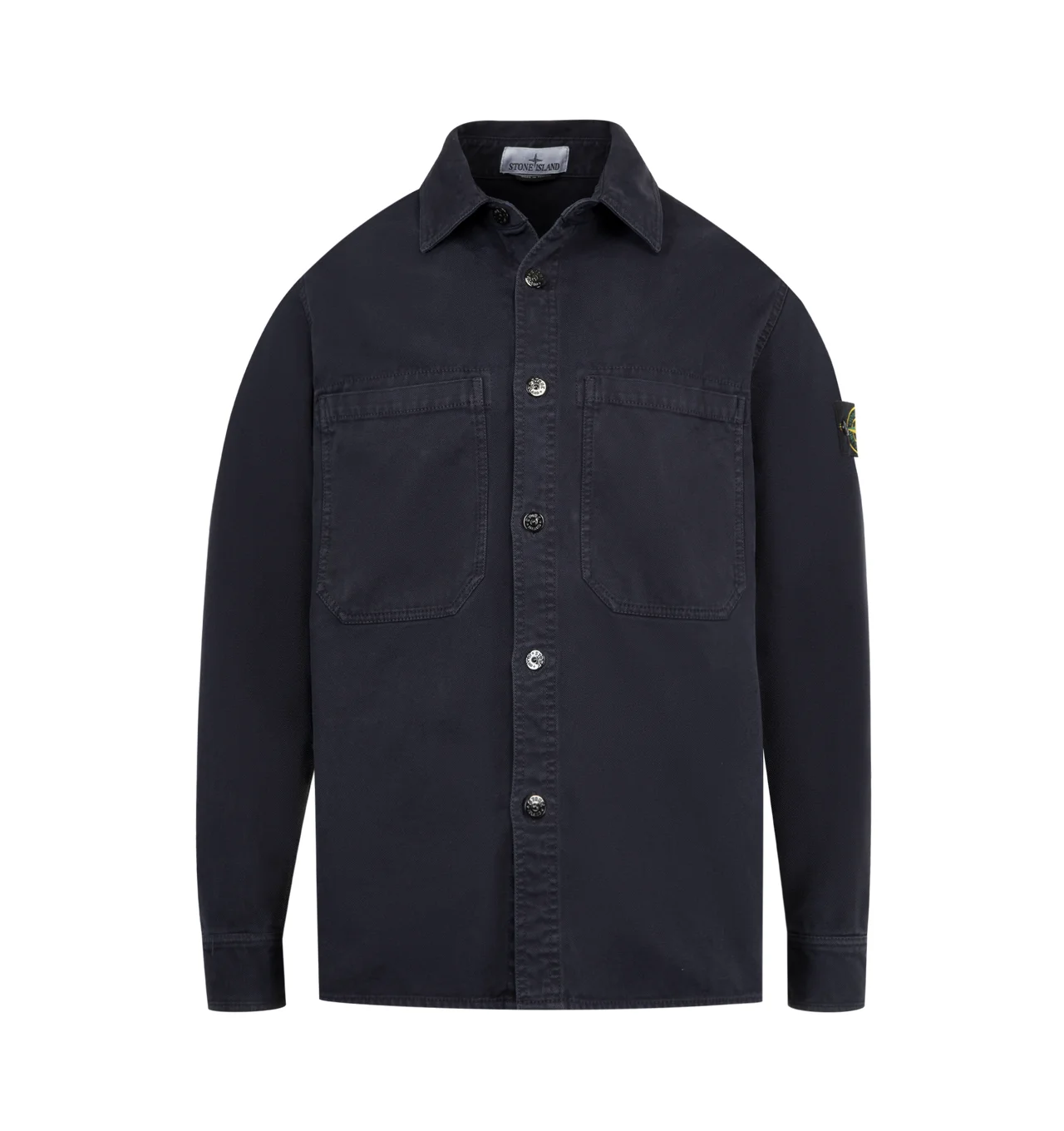 STONE ISLAND Overshirt featuring patch chest pockets, back yoke with loop, Stone Island badge on left sleeve, button at cuffs, button fastening, comfort fit, organic panama cotton and garment dyed with the 'OLD' treatment for a slightly worn appearance. 100% cotton. DESIGNER STYLE ID: 1200025-S0184 COLOR: V0126 INK