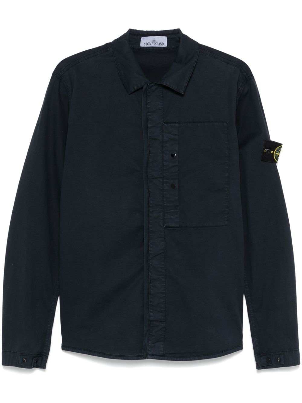 Compass-badge shirt Highlights - Navy blue - Front press-stud fastening - Stud-fastening chest pocket Imported Composition Cotton 97%, Elastane 3% SIZE & FIT Model measurements Height 6 ft 1 in(1.86 m) Bust/Chest 35.82 in(91 cm) Hips 36.61 in(93 cm) Waist 28.34 in(72 cm) FittingInformation Designed for a regular fit, allowing for a comfortably loose fit throughout the body Made from a midweight stretch fabric, this piece offers elasticity and flexibility when worn