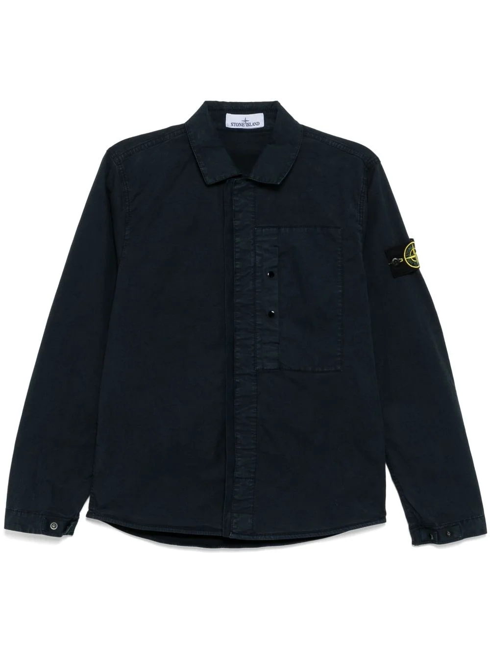 supima cotton shirt Highlights - Navy blue - Concealed front press-stud fastening - Classic collar - Signature detachable compass badge - Press-stud fastening cuffs Imported Composition Cotton 97%, Elastane 3% SIZE & FIT Model measurements Height 6 ft 2 in(1.87 m) Bust/Chest 33.07 in(84 cm) Hips 35.43 in(90 cm) Waist 26.77 in(68 cm) FittingInformation Designed to be unstructured, offering a loose fit throughout Made from a midweight non-stretch fabric